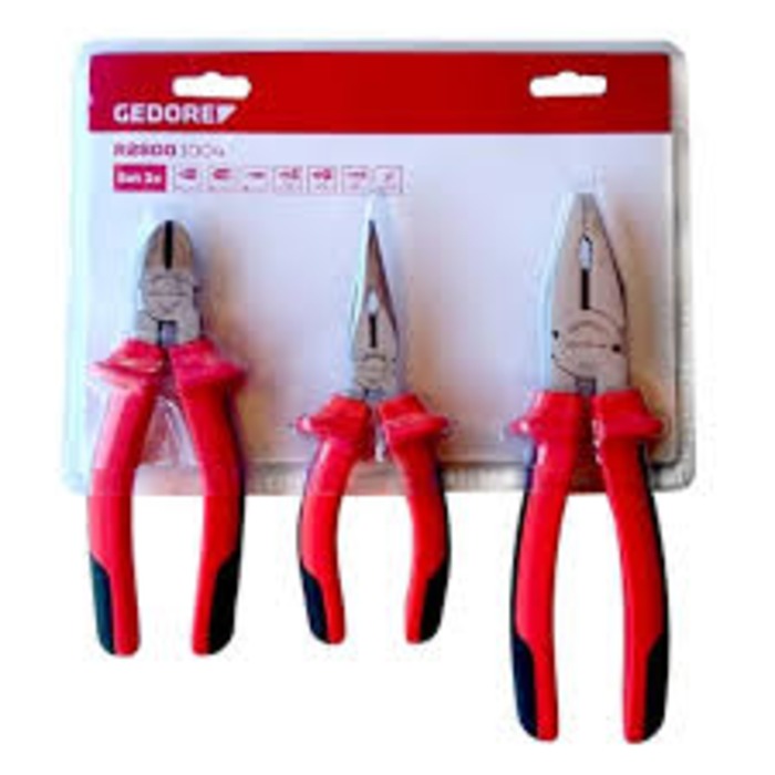 O jogo de alicates fundamental para sua caixa de ferramentas. :: Especificações Técnicas: - Alicate universal: 8' (200mm) / 0,750Kg - Alicate corte diagonal: 6.1/2' (165mm) - Alicate tipo telefone: 6.1/2' (165mm) - Produzido em Aço - Conteúdo da Embalagem: :: Jogo de Alicate com 3 Peças: - 1 alicate universal - 1 alicate corte diagonal - 1 alicate tipo telefone Ref.: GEDORE RED-3301189 Marca.: GEDORE RED