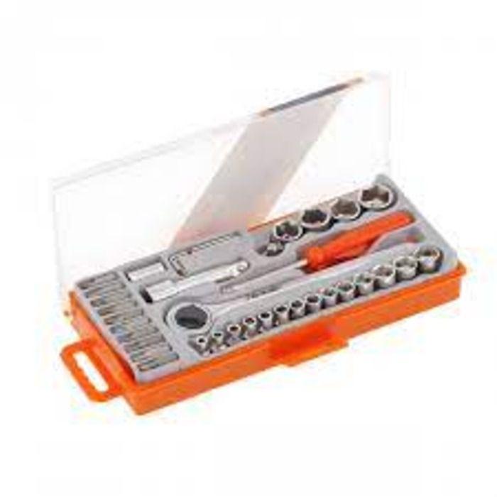 Jogo chave catraca reversível com soquetes 40 peças. Para instalações onde requer parafusos sextavados, bits para fendas e philips.