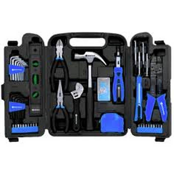 :: Composição: 01 Alicate de bico reto 6,5' (160 mm) 01 Alicate de corte diagonal 6,5' (160 mm) 01 Alicate prensa terminal 01 Chave para bits 04 Chaves de precisão 01 Chave ajustável/inglesa 6' (150 mm) 01 Estilete (9 mm) 01 Martelo unha 250 g 01 Nível 9' (230 mm) 10 Parafusos (6 mm) 51 Pregos de aço com cabeça (20 mm) 5 Parafusos máquina 4 Ganchos 10 Buchas plásticas para fixação (6 x 25 mm) 01 Trena (3,5 m x 12 mm) 01 Jogo com 20 bits 01 Jogo com 16 chaves allen