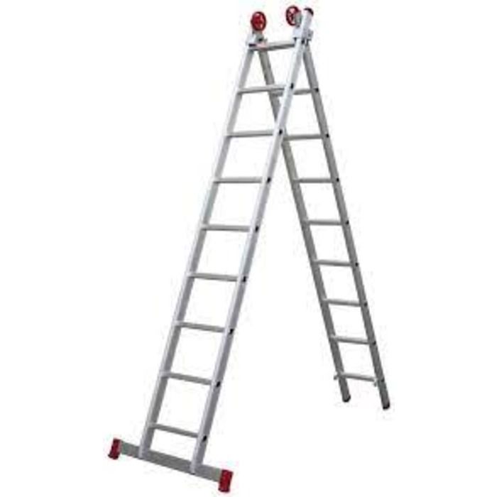 Escada Ágil de Alumínio, o que lhe confere extrema leveza e resistência. É indicada para serviços em geral, podendo ser utilizada de duas formas: estendida, e no formato pintor. Possui barras estabilizadoras. Sua carga máxima de trabalho é de 150 Kg.