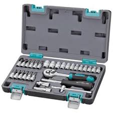 O jogo de soquetes e acesórios é composto por 29 peças de excelente qualidade em aço cromo vanádio, proporcionando maior durabilidade e resistência. Acompanha estojo de plástico para armazenamento das ferramentas.