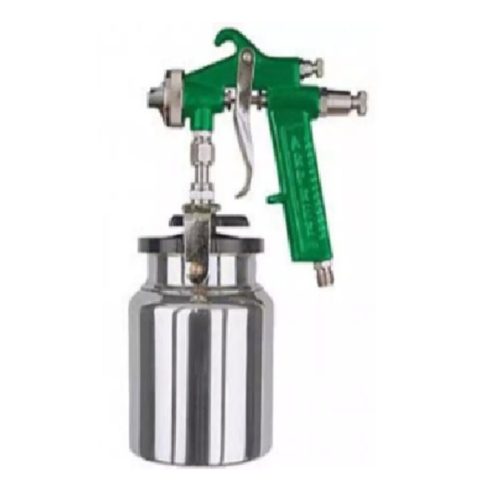 Sucção. Indicada para qualquer tipo de tinta atendendo baixas produções.